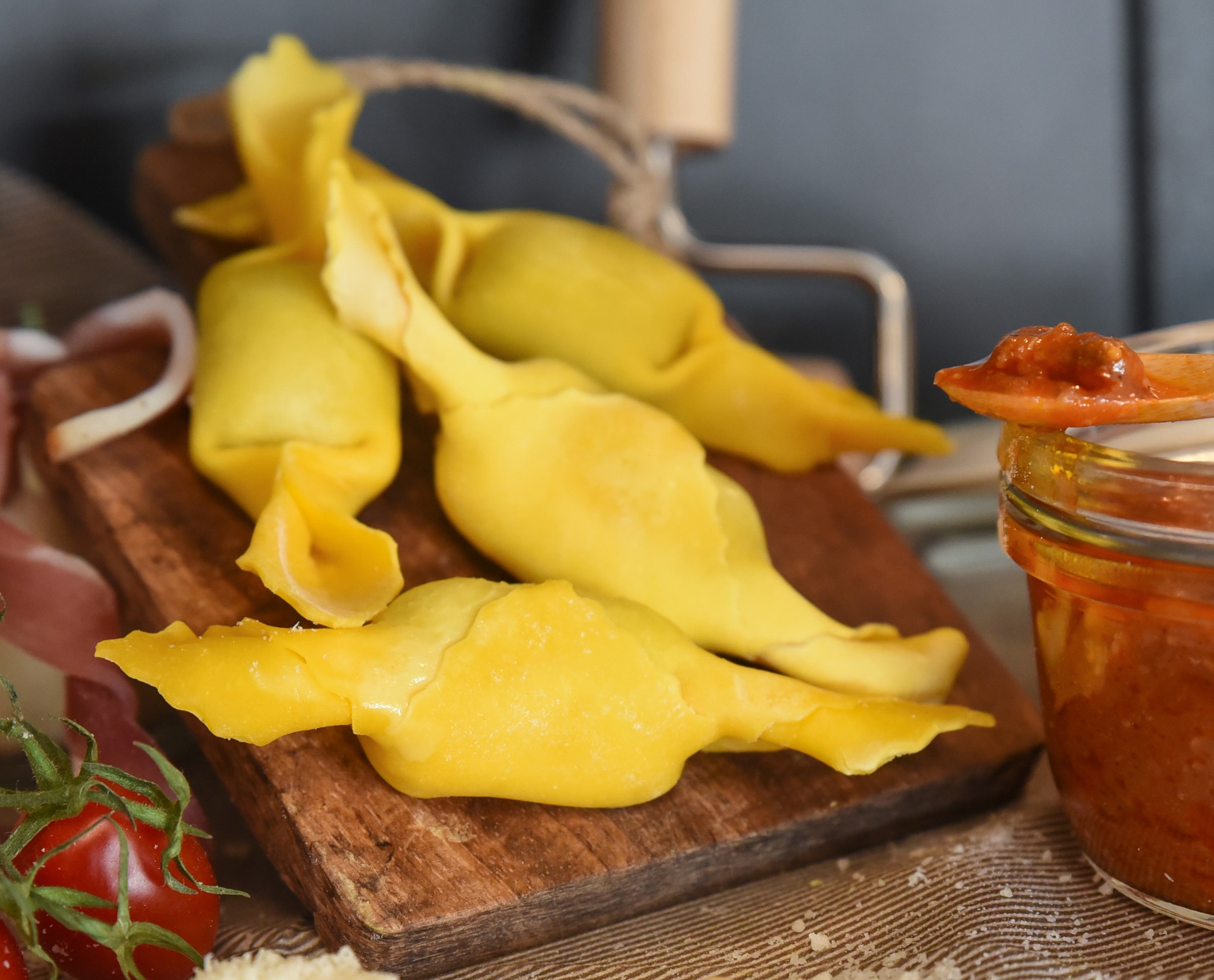 Casoncelli artigianali con pasta fresca all'uovo di nostra produzione farciti con ripieno alla zucca